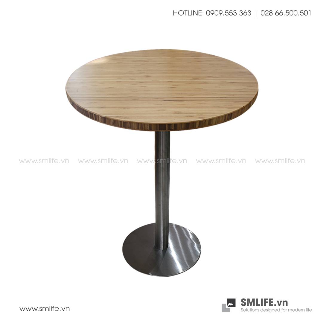 Bàn cafe mặt bàn tre ép Tròn D50, chân INOX