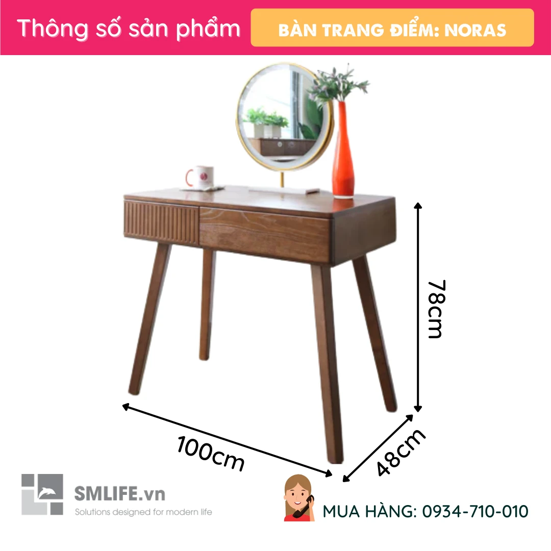 Bàn trang điểm gỗ tự nhiên Noras là lựa chọn lý tưởng cho những ai yêu thích không gian sống tối giản, hiện đại và đậm chất Bắc Âu. Được chế tác hoàn toàn từ gỗ cao su tự nhiên, sản phẩm không chỉ mang lại sự mộc mạc ấm áp mà còn đảm bảo độ bền vượt trội theo thời gian.