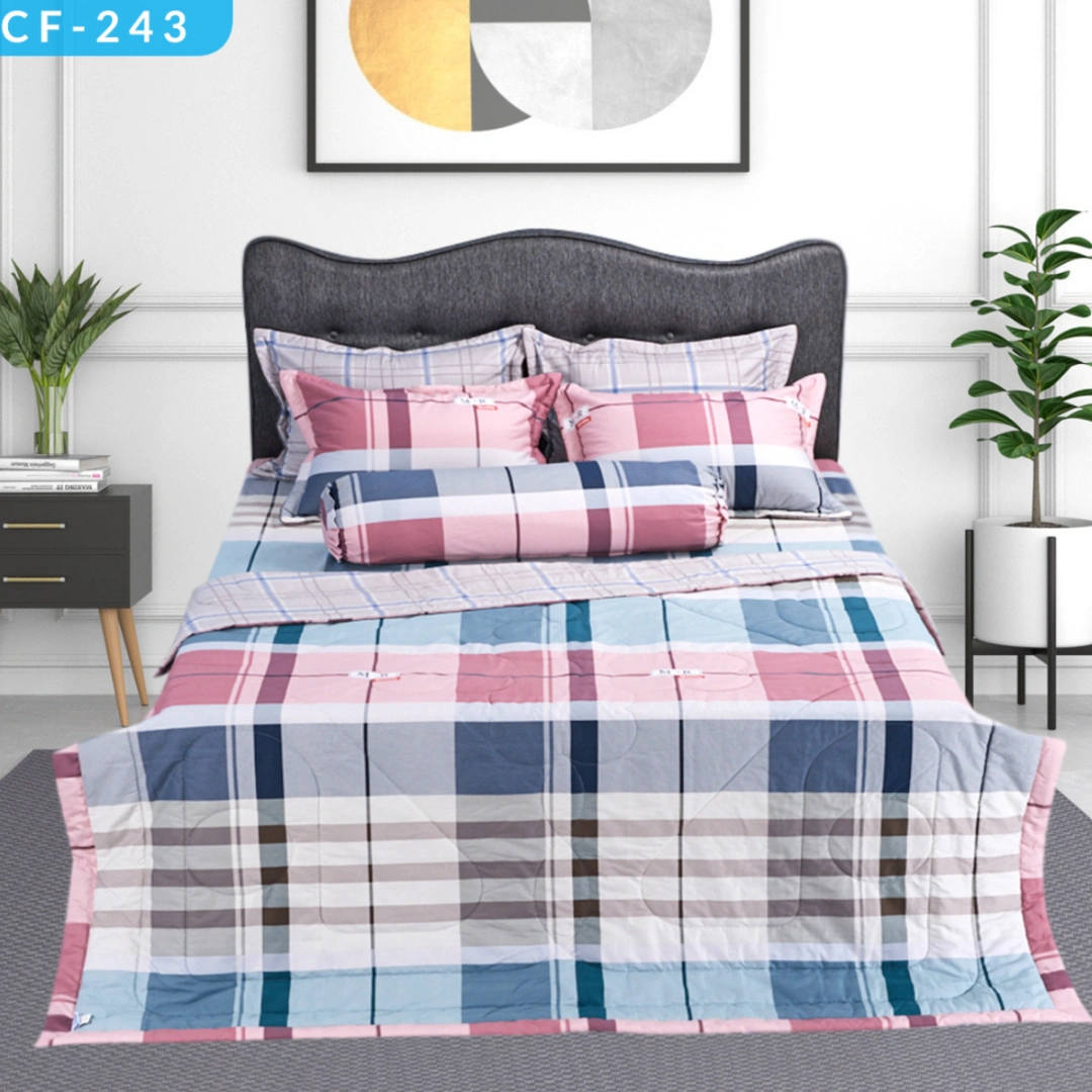 Bộ Drap ga trải giường hiện đại Comfort nhiều size CF243 được làm nên từ 100% vải cotton có cấu tạo từ các sợi bông nguyên chất - một trong những chất liệu chăn drap gối rất được ưa chuộng hiện nay nhờ vào nhiều ưu điểm nổi bật. Drap Comfort với thiết kế đặc biệt “2 trong 1” - sử dụng được cả 2 mặt của 1 bộ drap. Chỉ với việc đổi mặt sử dụng, bạn đã có thêm một bộ drap khác, thổi bừng sự tươi mới cho không gian phòng ngủ. Trọn bộ sản phẩm bao gồm: 1 ga trải giường (drap); 1 mền; 2 vỏ gối nằm 50x70cm; 1 vỏ gối ôm 40x105cm.