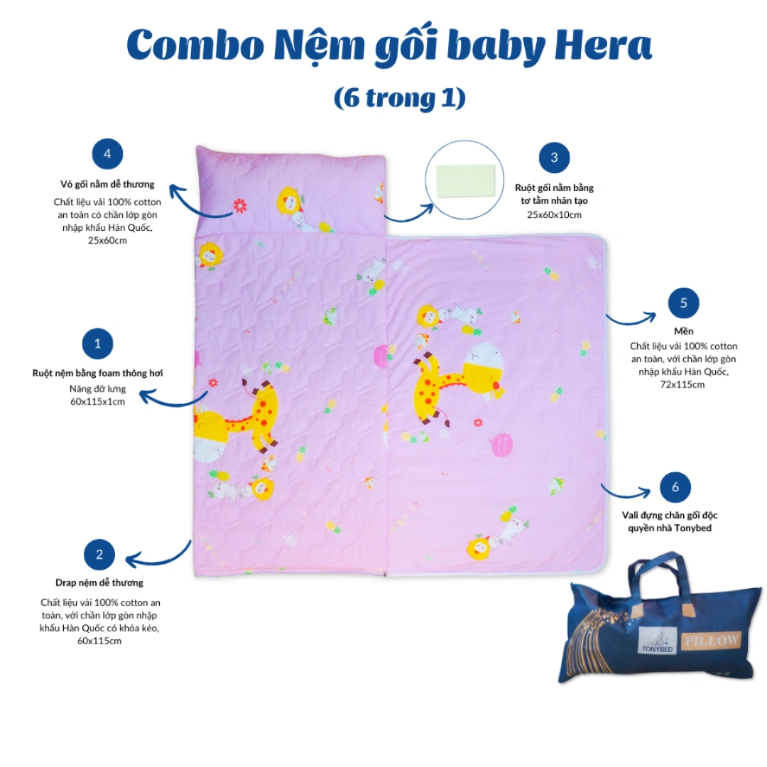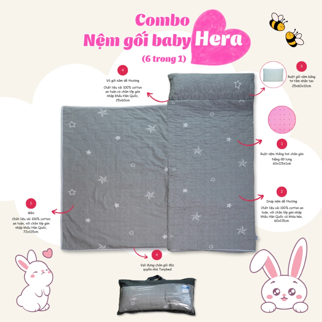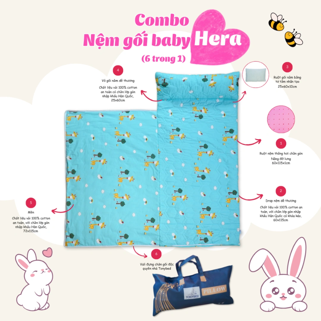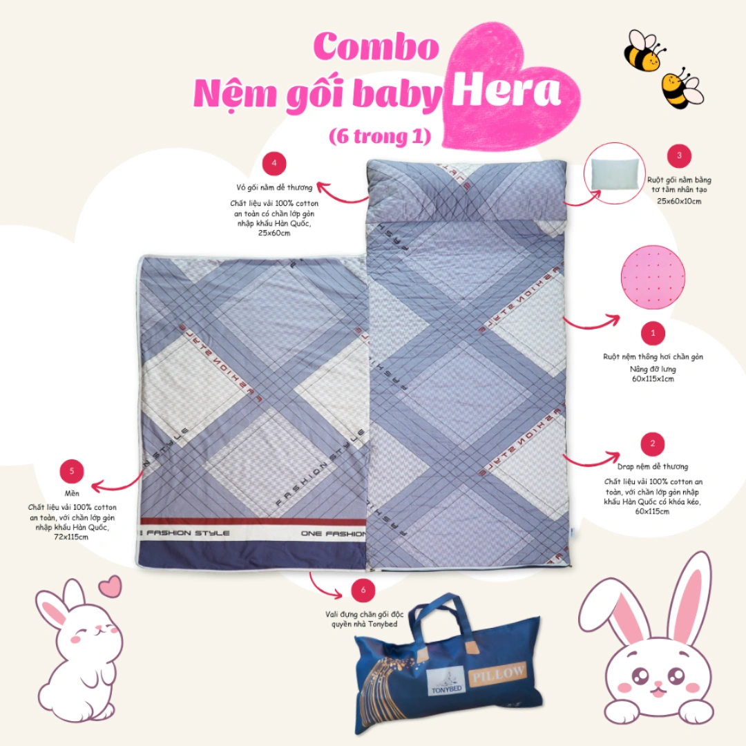 Combo nệm gối cho bé 6 trong 1 Baby Hera
