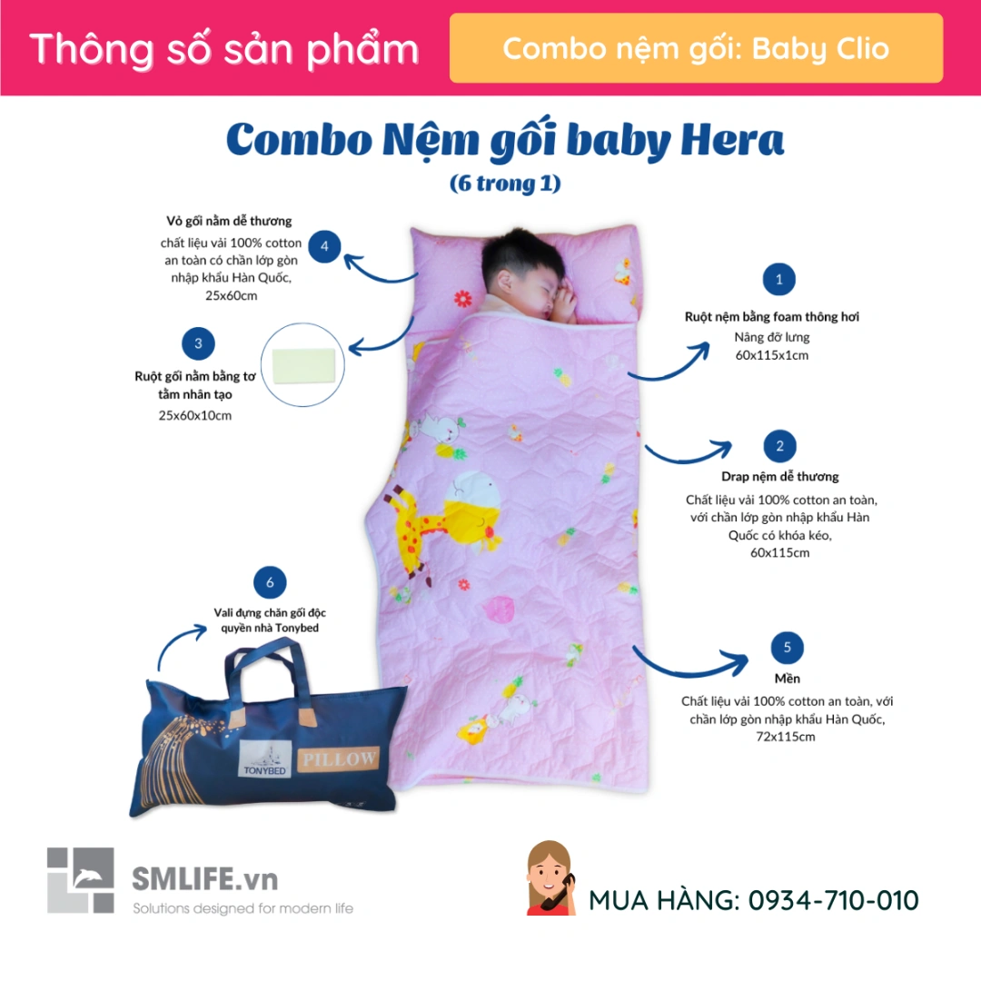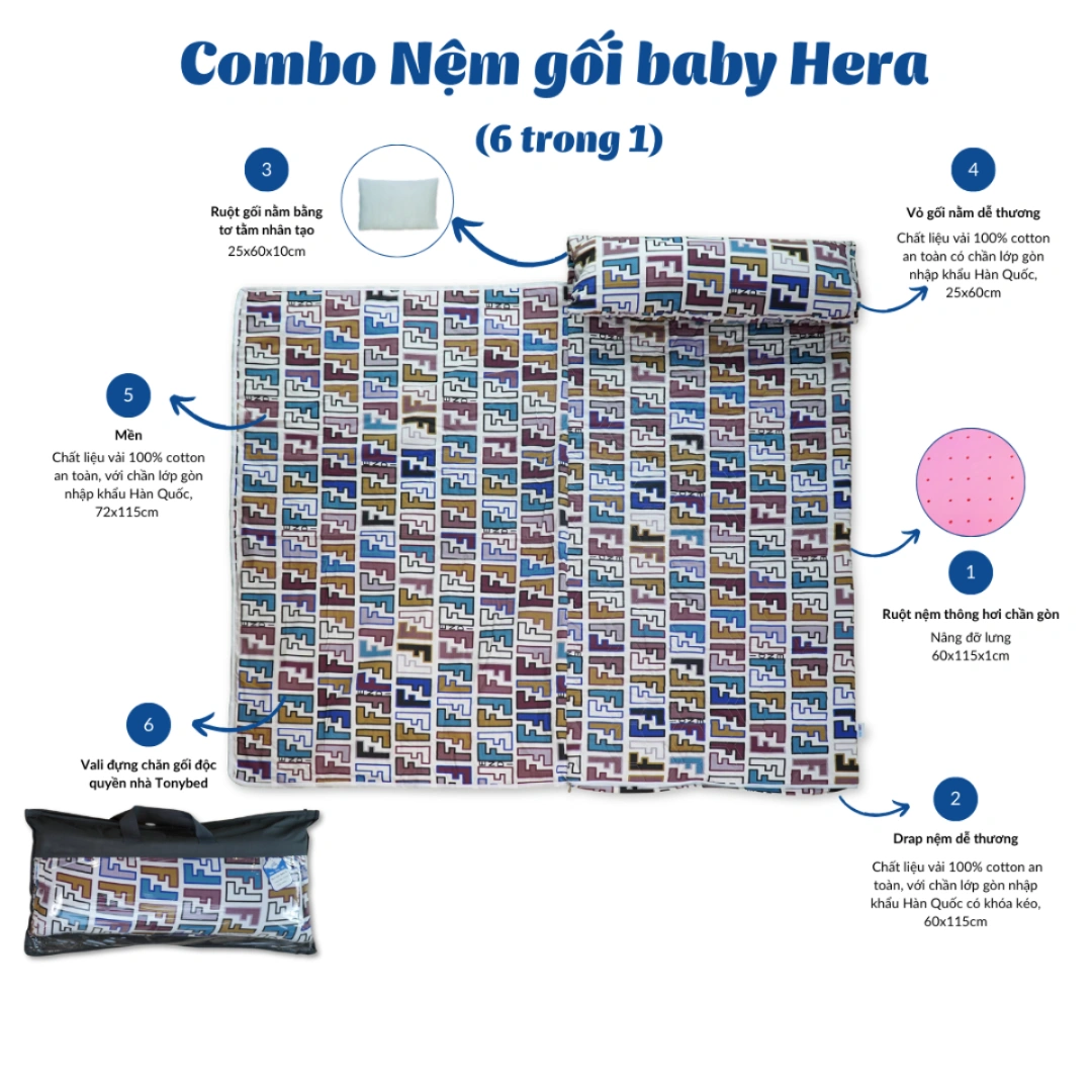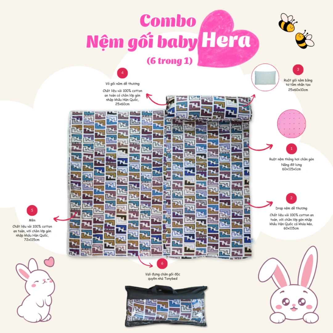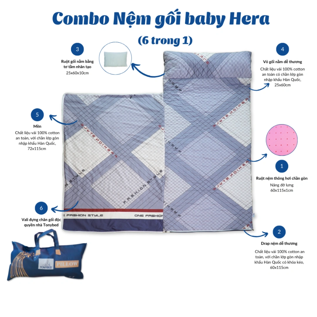 Combo nệm gối cho bé 6 trong 1 Baby Hera