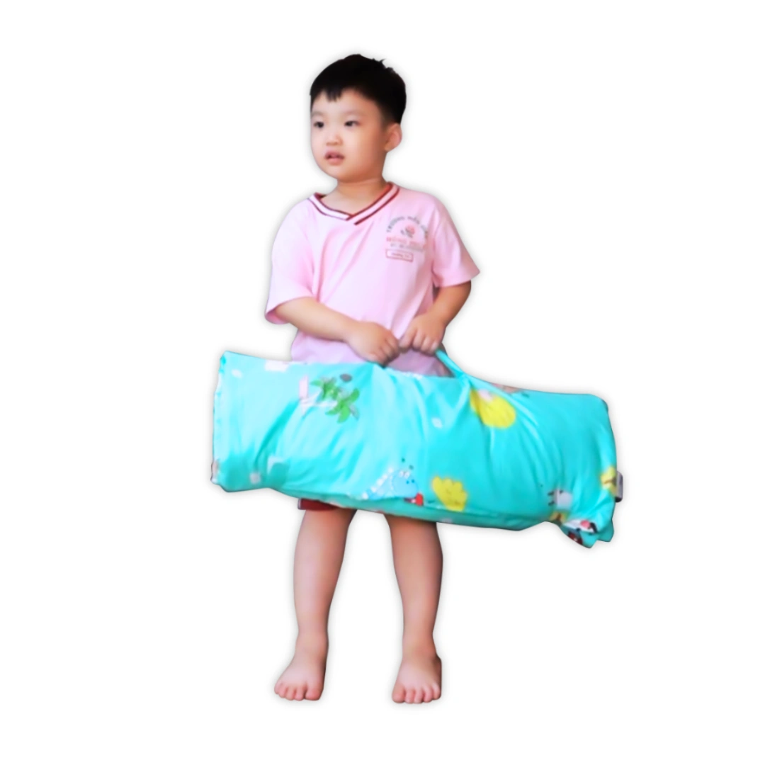 - Sản phẩm đi kèm vali chuyên dụng, giúp bố mẹ dễ dàng mang theo bộ nệm gối trong các chuyến đi xa hoặc khi bé đi học.