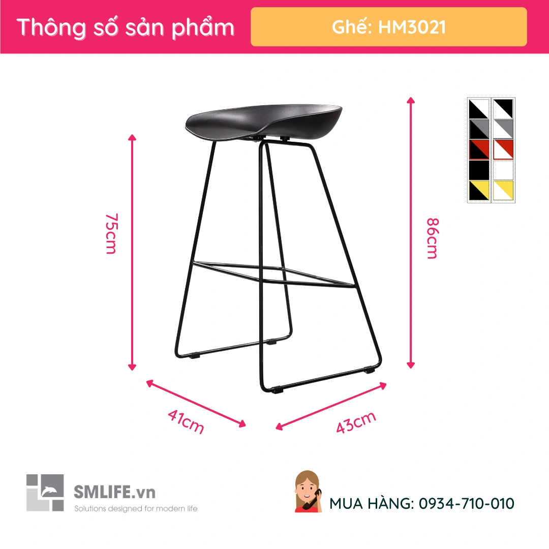 Ghế bar ngoài trời chân sắt sơn tĩnh điện HM3021 được thiết kế với dáng vẻ thanh lịch hiện đại. Ghế có độ bền cao. Là lựa chọn thích hợp cho quán cafe, quán bar với chi phí đầu tư thấp mà vẫn mang lại hiệu quả cao.