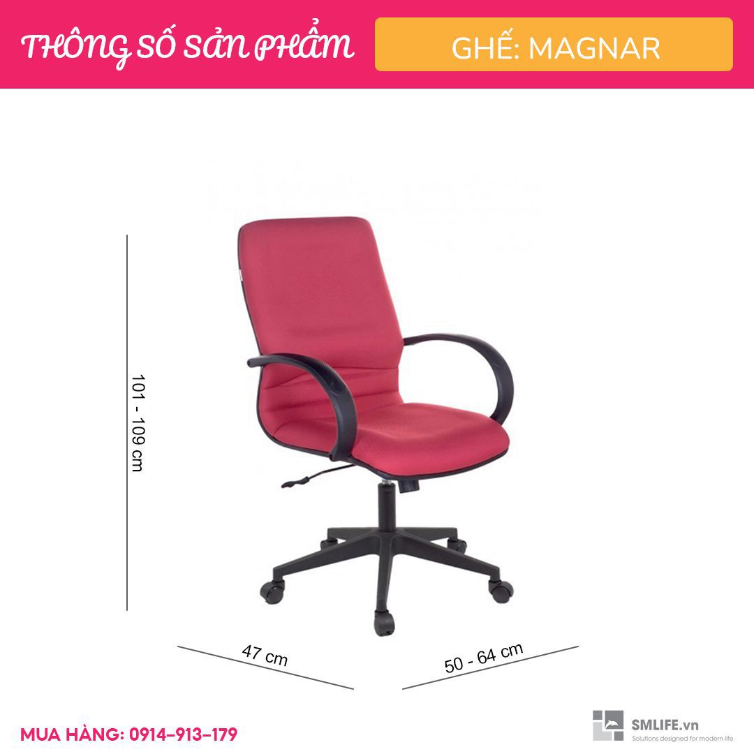 Ghế xoay văn phòng lưng trung bọc vải Magnar được sản xuất với đặc điểm nệm bọc vải hoặc simili, tay nhựa tròn, mâm ngã 1 cần, chân xoay nhựa lớn.Mẫu ghế sở hữu kiểu dáng đơn giản, phù hợp với nhiều không gian và là mẫu ghế yêu thích của nhiều văn phòng công ty. Ghế bọc nệm vải êm ái giúp mang lại cảm giác thoải mái, dễ chịu khi ngồi lâu. Nệm ghế màu sắc tươi sáng tạo điểm nhấn cũng như tăng tính sáng tạo cho không gian sử dụng.