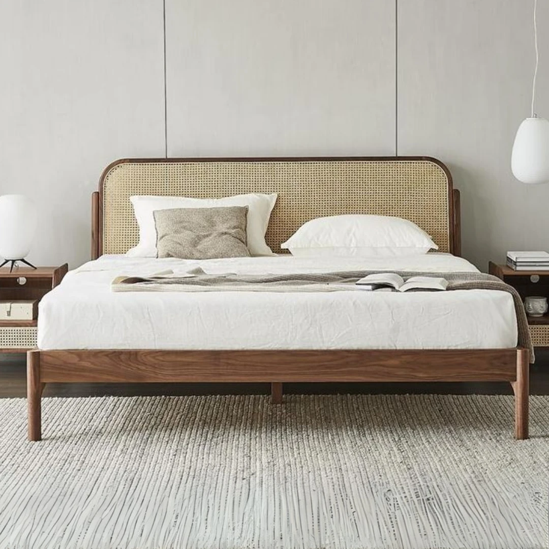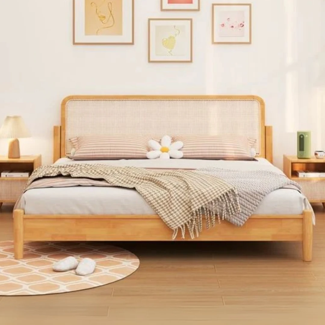Chất liệu | Gỗ Ash kết hợp mây nhân tạo (Đầu giường). Hông giường & đuôi giường: gỗ cao su |