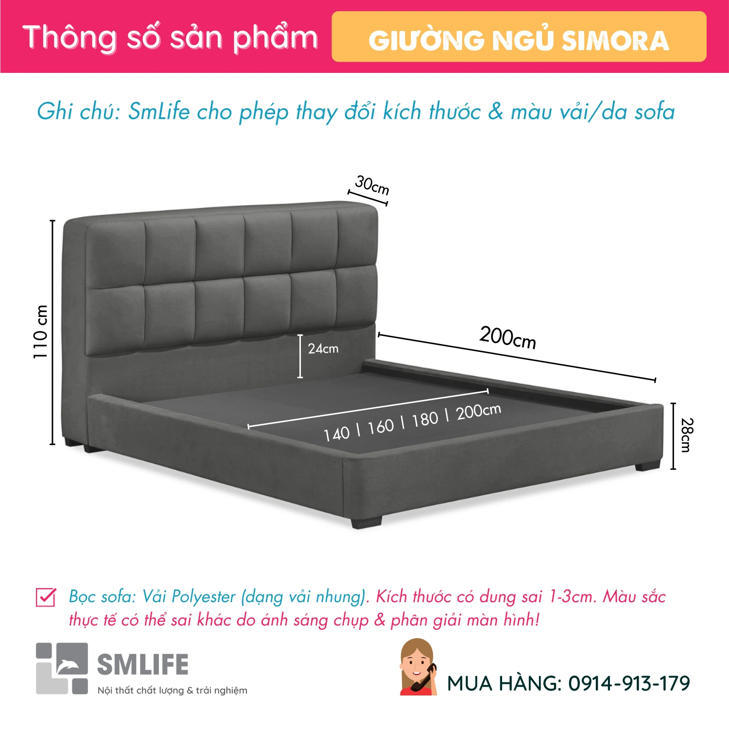 Giường bọc nệm SMLIFE nổi bật với thiết kế sang trọng, được sản xuất bởi đội ngũ thợ lành nghề cùng công nghệ hiện đại, đảm bảo độ tỉ mỉ và chất lượng vượt trội.
