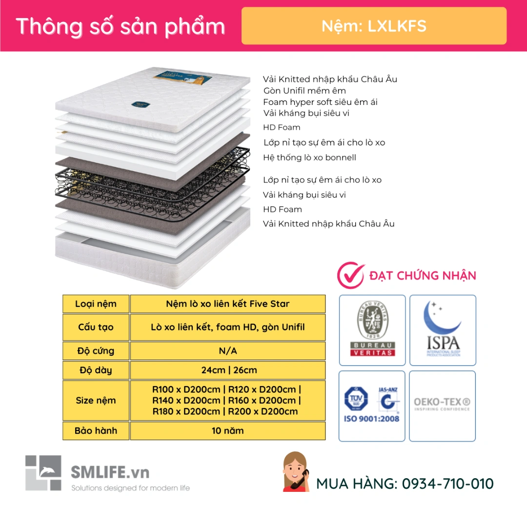 Thông Số Kỹ Thuật Nệm Lò Xo Liên Kết Five Star