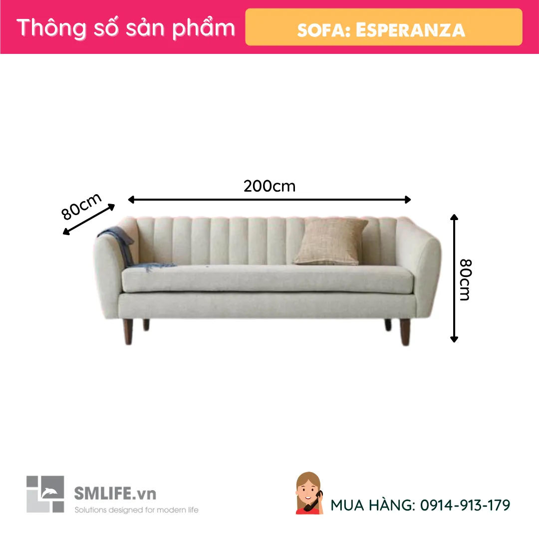 Sofa băng Esperanza - C được thiết kế đơn giản theo phong cách hiện đại trang nhã phù hợp với không gian rộng như phòng khách. Lợi ích của Sofa băng là có thể dùng làm gường nhỏ khi ngủ. Với chất liệu được làm từ vải cao cấp, khung gỗ thông Pine và Mousse ( D40 theo tiêu chuẩn xuất khẩu) thì sản phẩm luôn lựa chọn phổ biến cho mọi gia đình ngày nay.