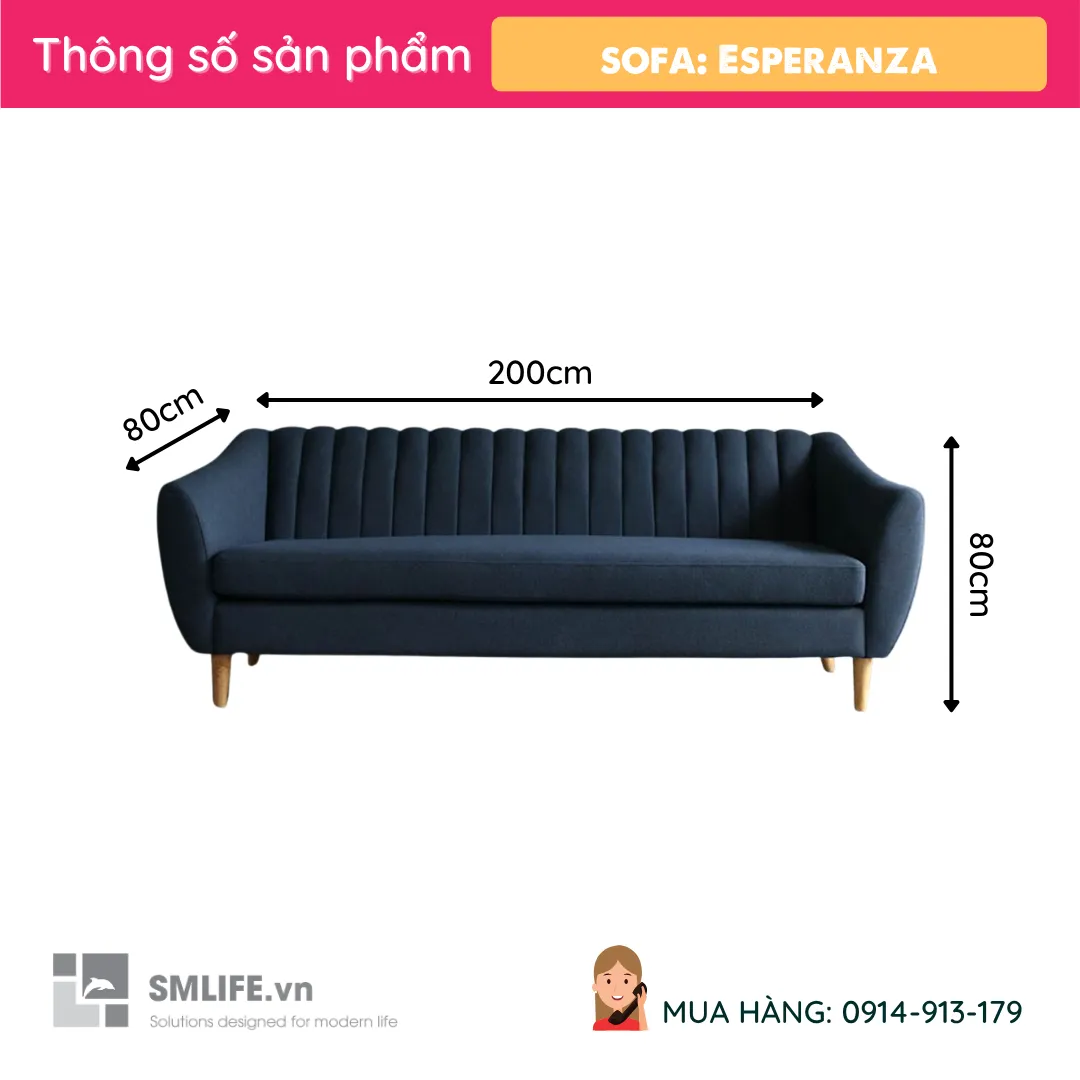 Sofa băng Esperanza - Xanh được thiết kế đơn giản theo phong cách hiện đại trang nhã phù hợp với không gian rộng như phòng khách. Lợi ích của Sofa băng là có thể dùng làm gường nhỏ khi ngủ. Với chất liệu được làm từ vải cao cấp, khung gỗ thông Pine và Mousse ( D40 theo tiêu chuẩn xuất khẩu) thì sản phẩm luôn lựa chọn phổ biến cho mọi gia đình ngày nay.