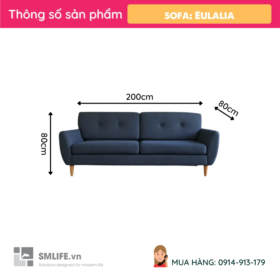 Sofa băng Eulalia - Xanh được thiết kế đơn giản theo phong cách hiện đại trang nhã phù hợp với không gian rộng như phòng khách. Lợi ích của Sofa băng là có thể dùng làm gường nhỏ khi ngủ. Với chất liệu được làm từ vải cao cấp, khung gỗ thông Pine và Mousse ( D40 theo tiêu chuẩn xuất khẩu) thì sản phẩm luôn lựa chọn phổ biến cho mọi gia đình ngày nay.