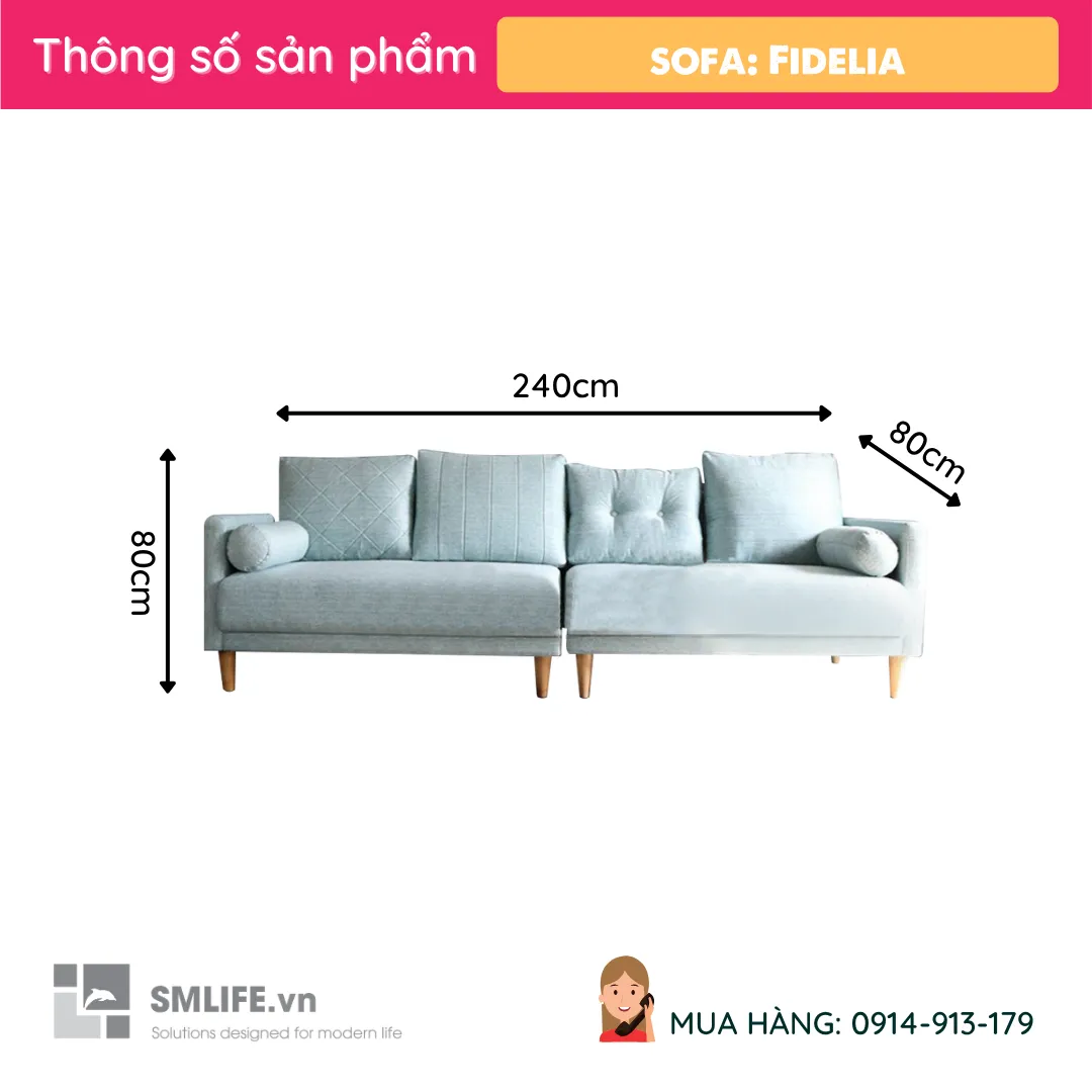 Sofa băng Fidelia - Xanh Biển được thiết kế đơn giản theo phong cách hiện đại trang nhã phù hợp với không gian rộng như phòng khách. Lợi ích của Sofa băng là có thể dùng làm gường nhỏ khi ngủ. Với chất liệu được làm từ vải cao cấp, khung gỗ thông Pine và Mousse ( D40 theo tiêu chuẩn xuất khẩu) thì sản phẩm luôn lựa chọn phổ biến cho mọi gia đình ngày nay.