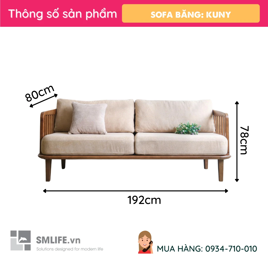 Sofa băng khung gỗ hiện đại Kuny mang thiết kế thanh lịch, khung gỗ chắc chắn, đệm ngồi êm ái – lựa chọn lý tưởng cho phòng khách tối giản, phong cách Japandi hoặc Scandinavian.