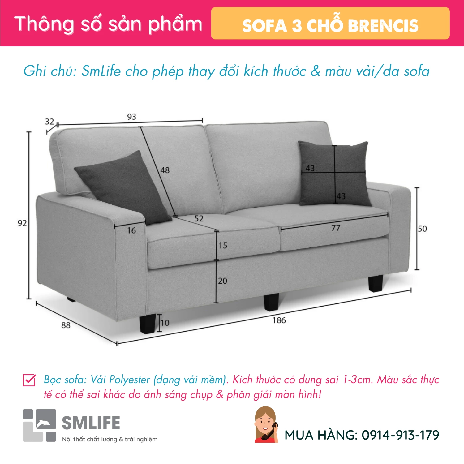Sofa băng vải cao cấp 3 chỗ BRENCIS