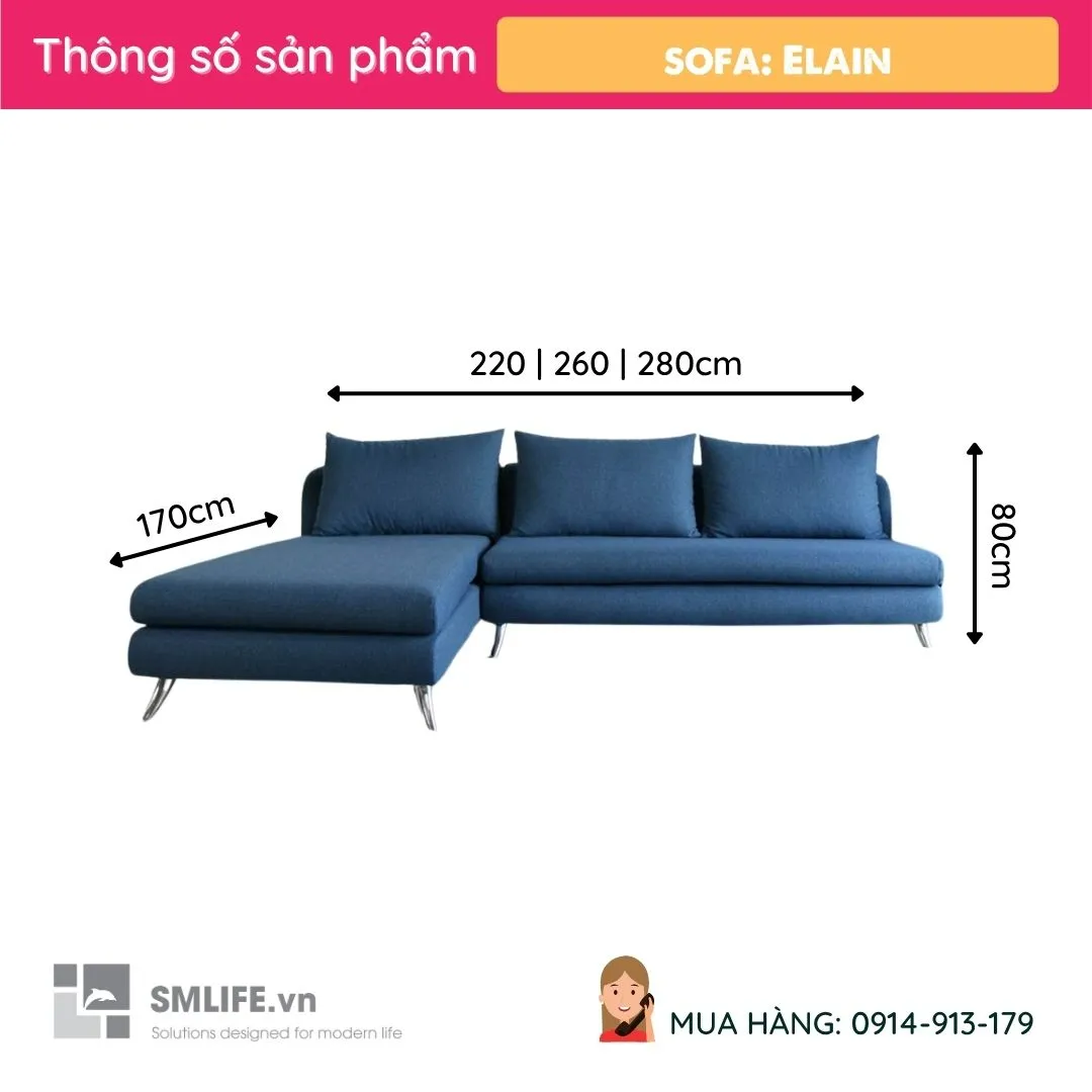 Sofa góc L Elain - Xanh đậm được thiết kế đơn giản theo phong cách hiện đại trang nhã phù hợp với không gian rộng như phòng khách. Lợi ích của Sofa góc là có thể dùng làm gường nhỏ khi ngủ. Với chất liệu được làm từ vải cao cấp, khung gỗ thông Pine và Mousse ( D40 theo tiêu chuẩn xuất khẩu) thì sản phẩm luôn lựa chọn phổ biến cho mọi gia đình ngày nay.
