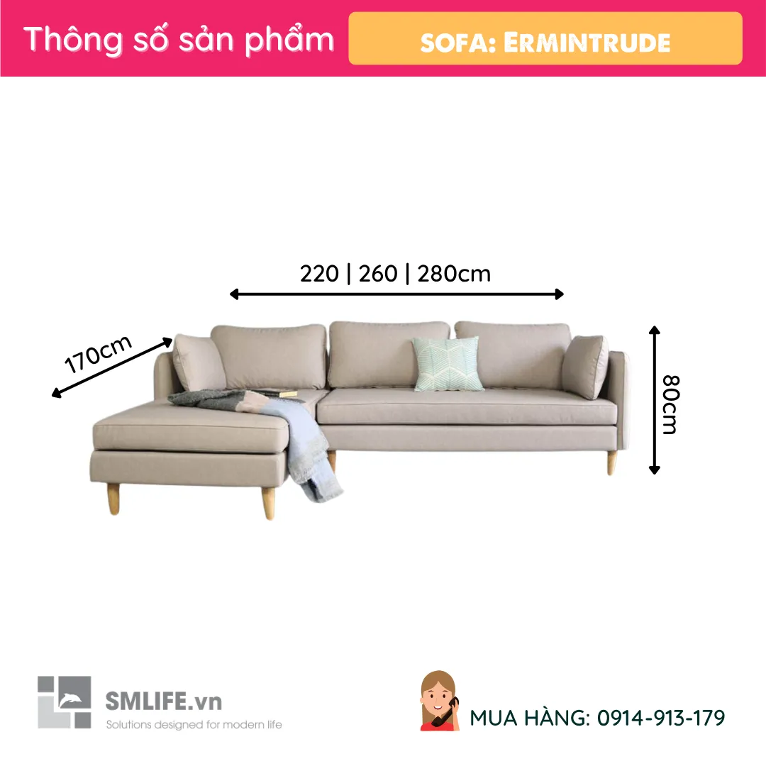 Sofa góc L Ermintrude - Kem được thiết kế đơn giản theo phong cách hiện đại trang nhã phù hợp với không gian rộng như phòng khách. Lợi ích của Sofa góc là có thể dùng làm gường nhỏ khi ngủ. Với chất liệu được làm từ vải cao cấp, khung gỗ thông Pine và Mousse ( D40 theo tiêu chuẩn xuất khẩu. Vải : vải AGB nhập khẩu Đài Loan, màu sắc khách có thể btùy chọn mẫu vải theo catologe ) thì sản phẩm luôn lựa chọn phổ biến cho mọi gia đình ngày nay.