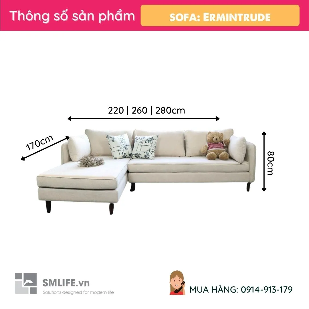Sofa góc L Ermintrude - Kem Trắng được thiết kế đơn giản theo phong cách hiện đại trang nhã phù hợp với không gian rộng như phòng khách. Lợi ích của Sofa góc là có thể dùng làm gường nhỏ khi ngủ. Với chất liệu được làm từ vải cao cấp, khung gỗ thông Pine và Mousse ( D40 theo tiêu chuẩn xuất khẩu. Vải : vải AGB nhập khẩu Đài Loan, màu sắc khách có thể btùy chọn mẫu vải theo catologe ) thì sản phẩm luôn lựa chọn phổ biến cho mọi gia đình ngày nay.