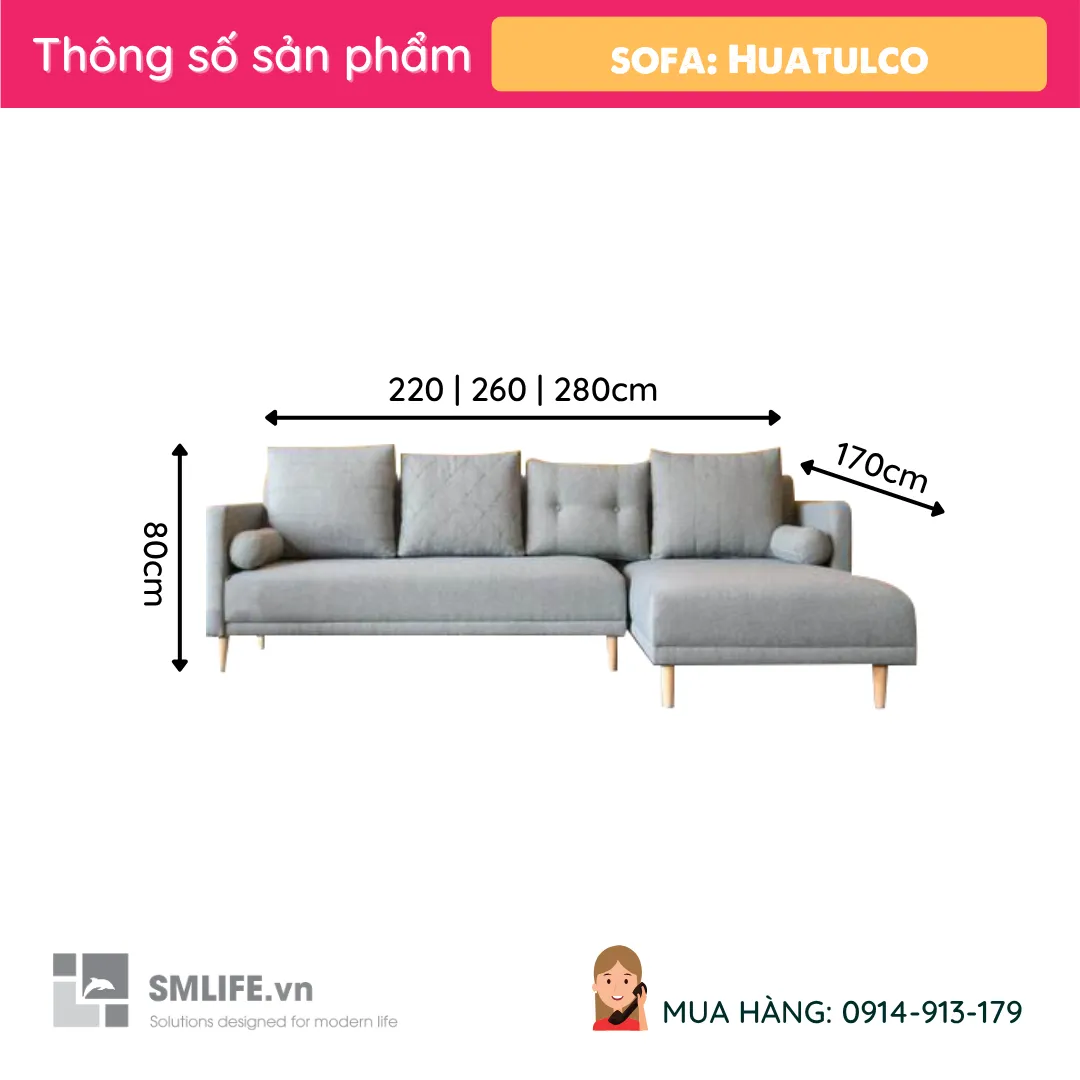 Sofa góc L Huatulco - Xám được thiết kế đơn giản theo phong cách hiện đại trang nhã phù hợp với không gian rộng như phòng khách. Lợi ích của Sofa góc là có thể dùng làm gường nhỏ khi ngủ. Với chất liệu được làm từ vải cao cấp, khung gỗ thông Pine và Mousse ( D35 theo tiêu chuẩn xuất khẩu. Vải : vải nhập khẩu Đài Loan, màu sắc khách có thể btùy chọn mẫu vải theo catologe ) thì sản phẩm luôn lựa chọn phổ biến cho mọi gia đình ngày nay.