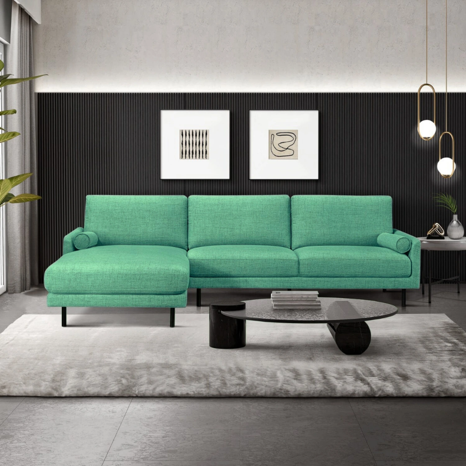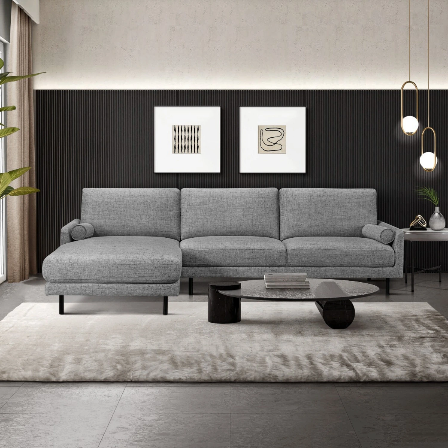 được thiết kế sofa góc chữ L theo phong cách tối giản, giúp tối ưu diện tích phòng khách và dễ dàng bố trí theo nhiều kiểu không gian. Sản phẩm sử dụng khung gỗ chắc chắn, đệm dày êm ái và chất liệu bọc cao cấp, mang lại cảm giác thư giãn lý tưởng sau ngày dài làm việc.