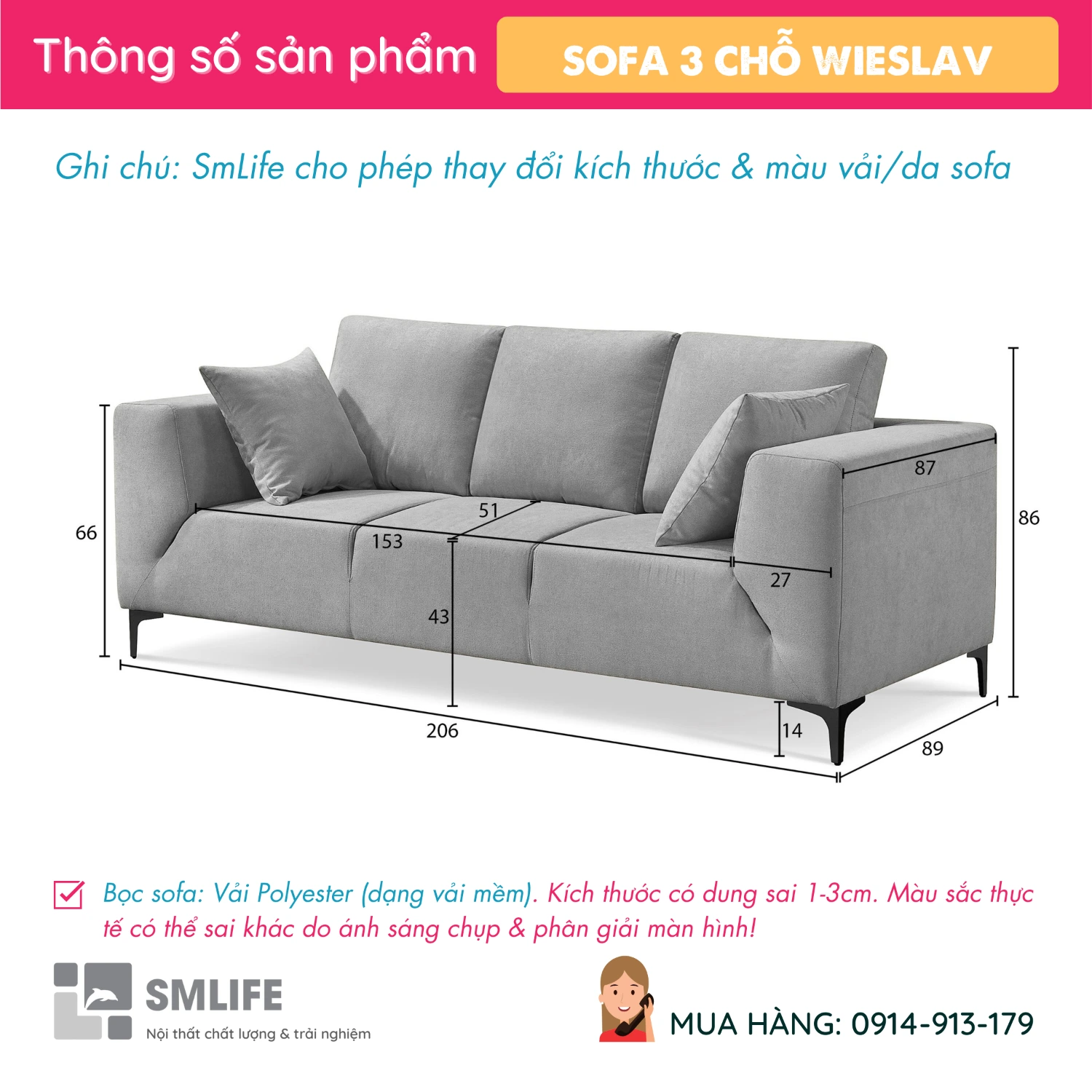 mang phong cách hiện đại với đường nét thanh thoát và chất liệu bọc được chọn lọc kỹ lưỡng, mẫu sofa văng 3 chỗ này kết hợp hoàn hảo giữa thẩm mỹ và tiện nghi. Khung gỗ bền chắc cùng đệm dày êm ái giúp người dùng luôn cảm thấy thư giãn. Lý tưởng cho phòng khách gia đình hoặc căn hộ chung cư.