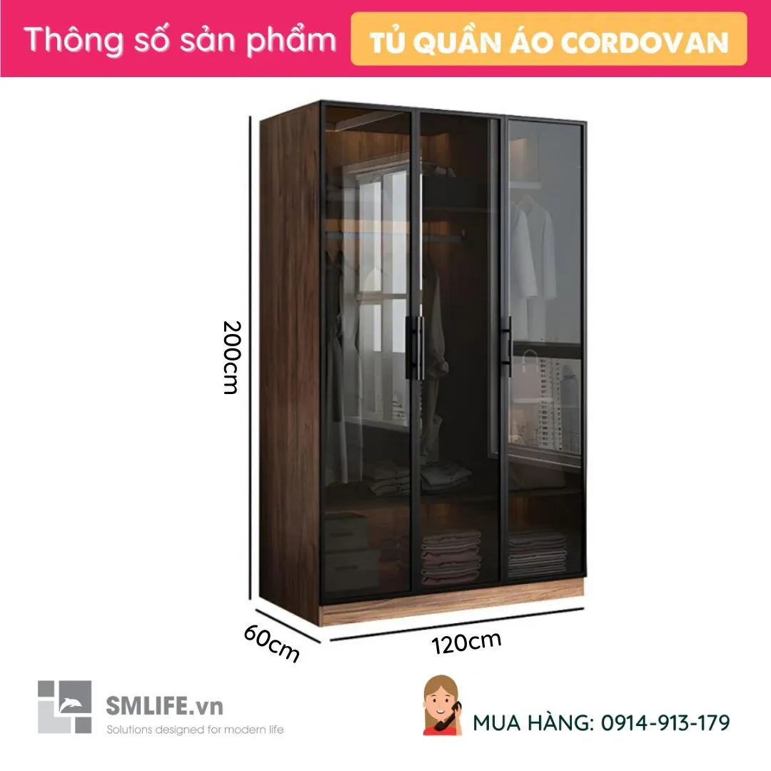 Tủ áo cánh kính khung nhôm sang trọng Cordovan với phong cách đơn giản sẽ là điểm nhấn nổi bật cho phòng ngủ của bạn. Sản phẩm phù hợp với nhiều phong cách nội thất từ hiện đại cho tới cổ điển, vintage. Tủ quần áo gỗ SMLIFE được thiết kế cân đối và cực kỳ chắc chắn mang đến nhiều không gian lưu trữ quần áo và đồ dùng. Sử dụng vật liệu ván ép công nghiệp MDF chống ẩm phủ Melamine cao cấp giúp tủ quần áo SMLIFE có độ bền cao, chống trầy và chống ẩm rất tốt. SMLIFE có hàng chục mẫu tủ quần áo với thiết kế mới lạ, độc đáo chắc chắn sẽ mang đến sự ấm áp cho phòng ngủ của bạn.