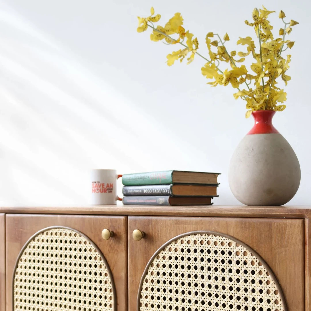 Tủ trang trí gỗ cánh mây hiện đại Annas là lựa chọn lý tưởng cho những ai yêu thích không gian sống tối giản, hiện đại và đậm chất Bắc Âu. Được chế tác hoàn toàn từ gỗ cao su tự nhiên, sản phẩm không chỉ mang lại sự mộc mạc ấm áp mà còn đảm bảo độ bền vượt trội theo thời gian.